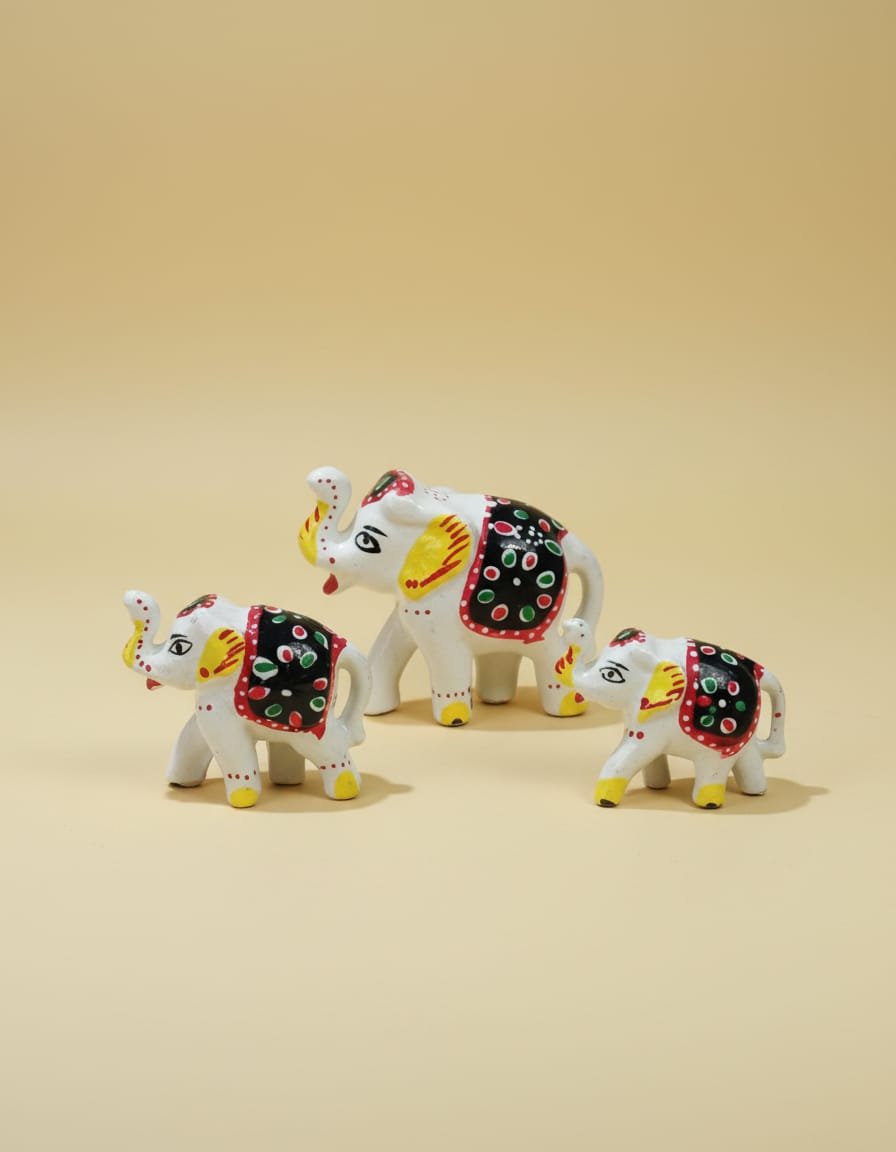 Our handcrafted Elephant Sets are a true celebration of traditional Indian artistry, available in elegant Green, Golden, White, Sky Blue, Black, and Red finishes. Each set is carefully designed and hand-painted by skilled artisans who bring years of craftsmanship, precision, and creativity into every piece. With intricate detailing, vibrant patterns, and premium finishing, these decorative elephants beautifully reflect cultural heritage and artistic excellence.
