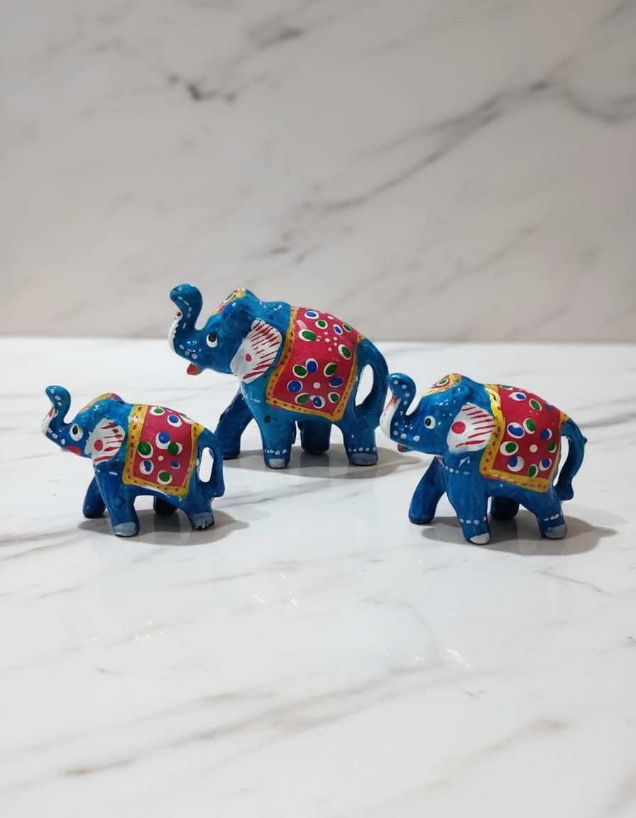 The Green Elephant Set symbolizes harmony, growth, and freshness, adding a soothing natural charm to interiors. The Golden Elephant Set represents royalty, prosperity, and positivity, making it perfect for festive décor and luxurious gifting. The White Elephant Set reflects purity and sophistication, effortlessly complementing both modern and traditional spaces. The Sky Blue Elephant Set brings calmness and graceful elegance, enhancing the ambiance with a refreshing appeal.