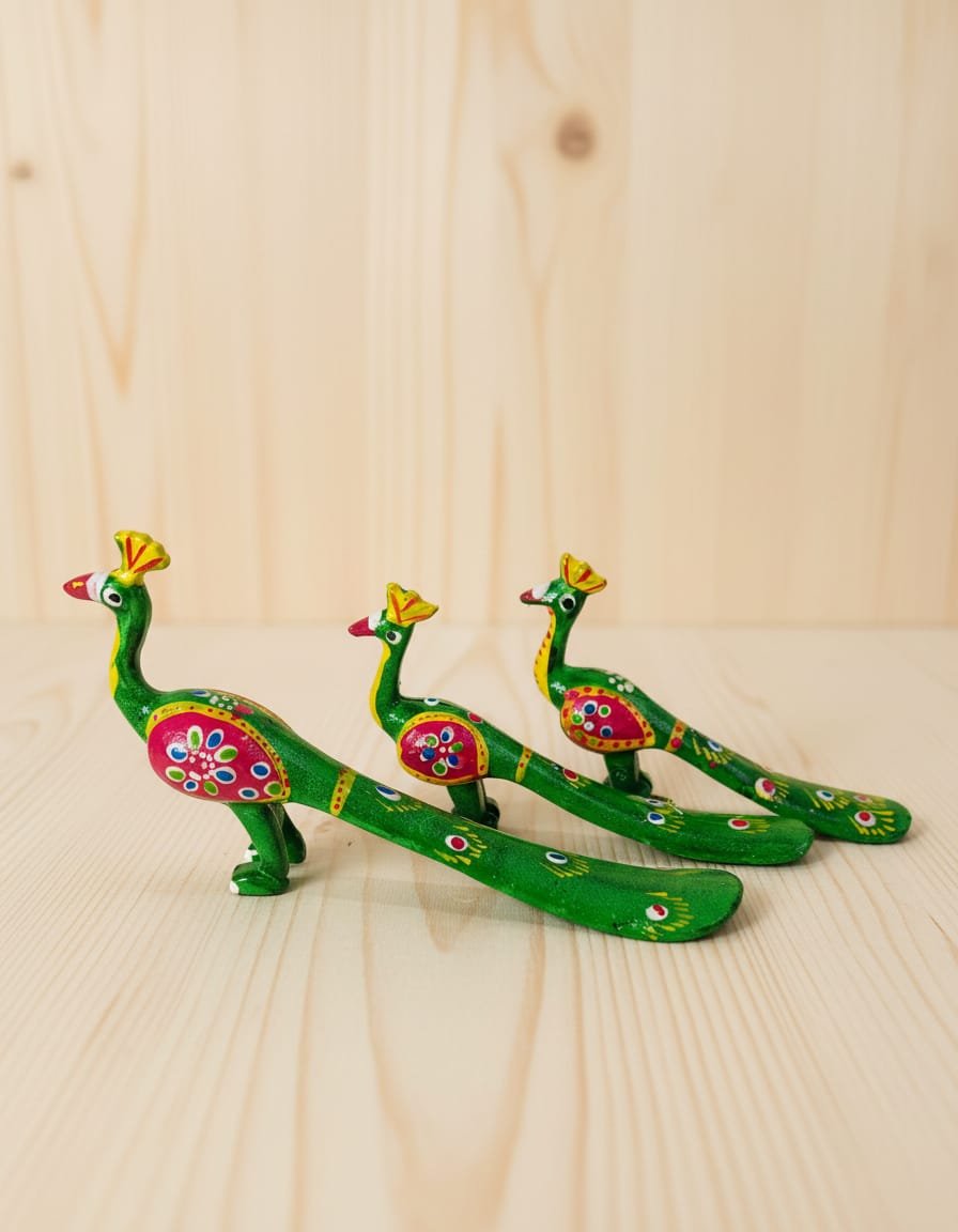 Our Peacock Sets are available in stunning Green, Skyblue, Golden, and Blue finishes. The Green Peacock Set symbolizes growth, harmony, and natural beauty with vibrant detailing. The Skyblue Peacock Set offers a serene and elegant look, ideal for modern and traditional décor themes. The Golden Peacock Set represents royalty and prosperity with its luxurious shine and rich finishing, making it perfect for festive decoration and premium gifting. The Blue Peacock Set reflects grace and sophistication, adding a bold yet artistic statement to your space.